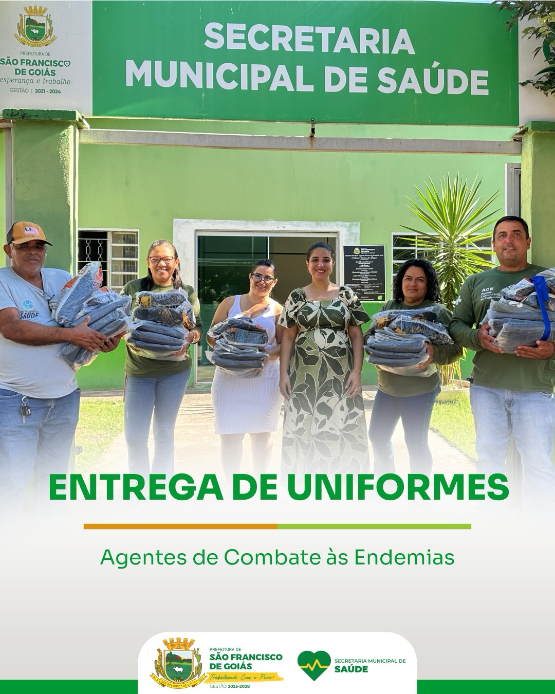 A Prefeitura de São Francisco de Goiás, por meio da Secretaria Municipal de Saúde, realizou a entrega dos novos uniformes aos nossos Agentes de Combate às Endemias 🦟🛡️