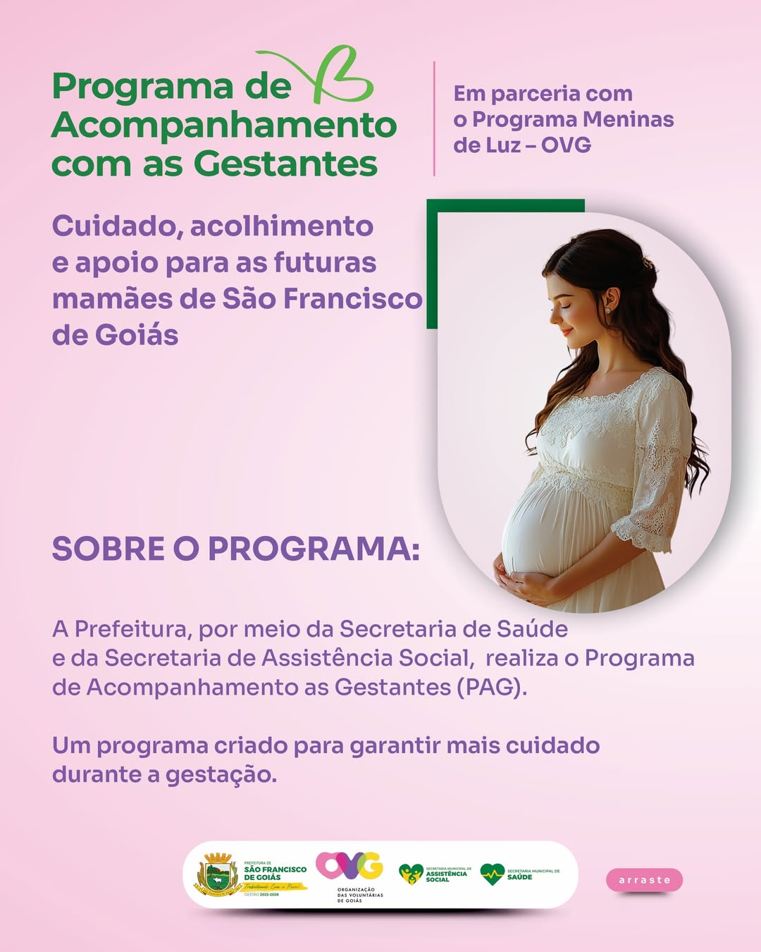 A Prefeitura lançou o Programa de Acompanhamento com as Gestantes (PAG), uma iniciativa que cuida, acolhe e acompanha cada etapa da gestação 💕