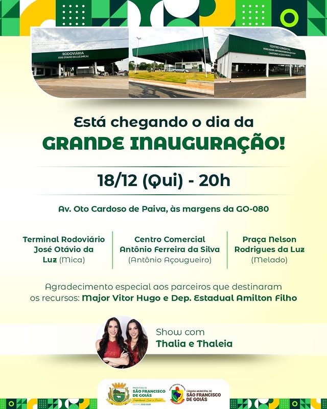 ➡️ Dia 18/12 (quinta-feira) | 20h | Av. Oto Cardoso de Paiva, às margens da GO-080.